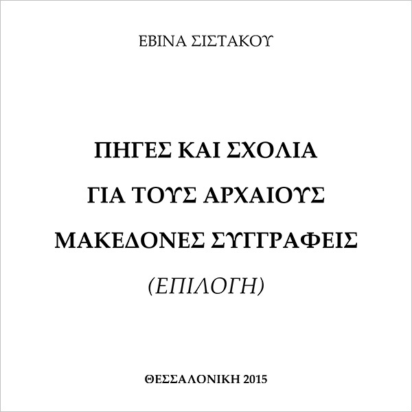 Η σύντομη αυτή μελέτη αποτελεί μια γραμματολογική καταγραφή των μακεδόνων συγγραφέων από την κλασική περίοδο έως το τέλος της αυτοκρατορικής περιόδου (5ος αι. π.Χ.–529 μ.Χ.). Η μελέτη περιλαμβάνει προσωπογραφικά στοιχεία, έργα που αποδίδονται στον κάθε συγγραφέα, ιστορικές και φιλολογικές μαρτυρίες, καθώς και σχετική σύγχρονη βιβλιογραφία. Συνοδεύεται από ανθολόγιο σωζόμενων κειμένων ή/και αποσπασμάτων.