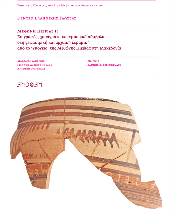 Συλλογικός τόμος (επιμ. Μ. Μπέσιος, Γ. Τζιφόπουλος και Α. Κοτσώνας), "Μεθώνη Πιερίας Ι: Επιγραφές, χαράγματα και εμπορικά σύμβολα, στη γεωμετρική και αρχαϊκή κεραμική από το ‘Υπόγειο’", ΚΕΓ, 2012.